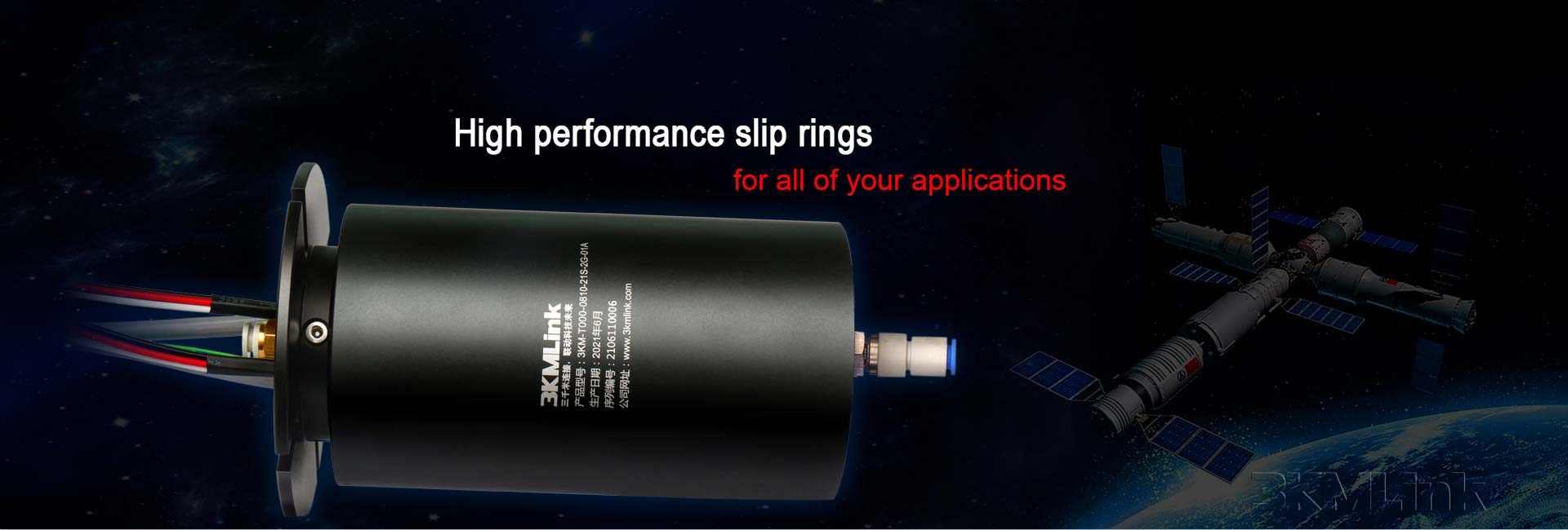 3KM T-series slip ring is designed with a through hole for shaft mounting, the through hole sizes are from 12.7mm to 124.6mm. it could be applied to transmit power, signals, RF, gas and fluid when the devices require 360° rotating.